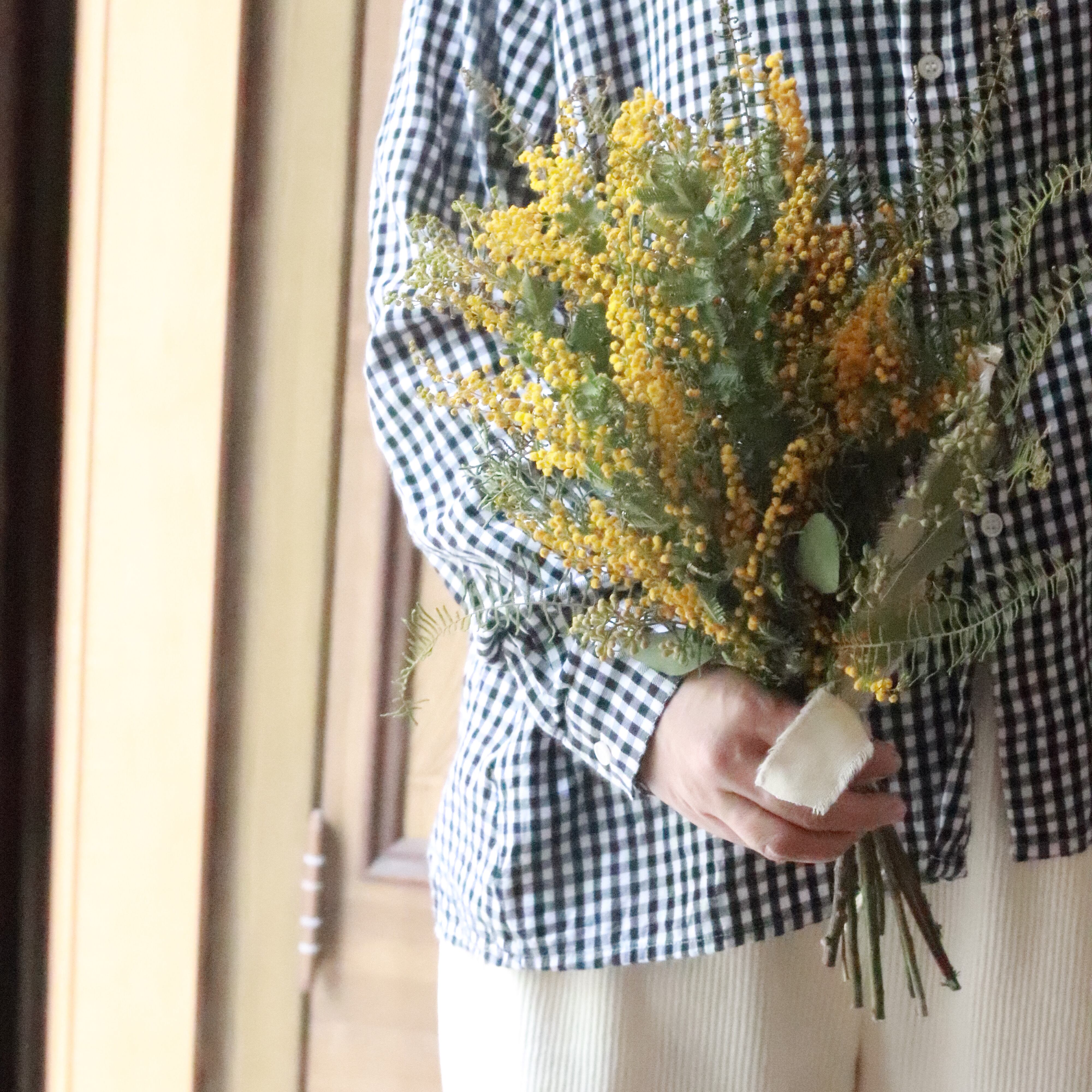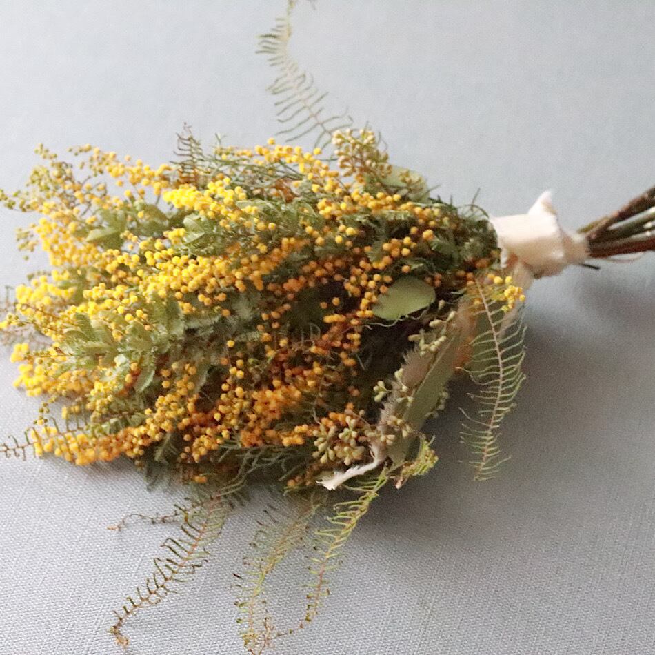 ふわふわのミモザを束ねた、