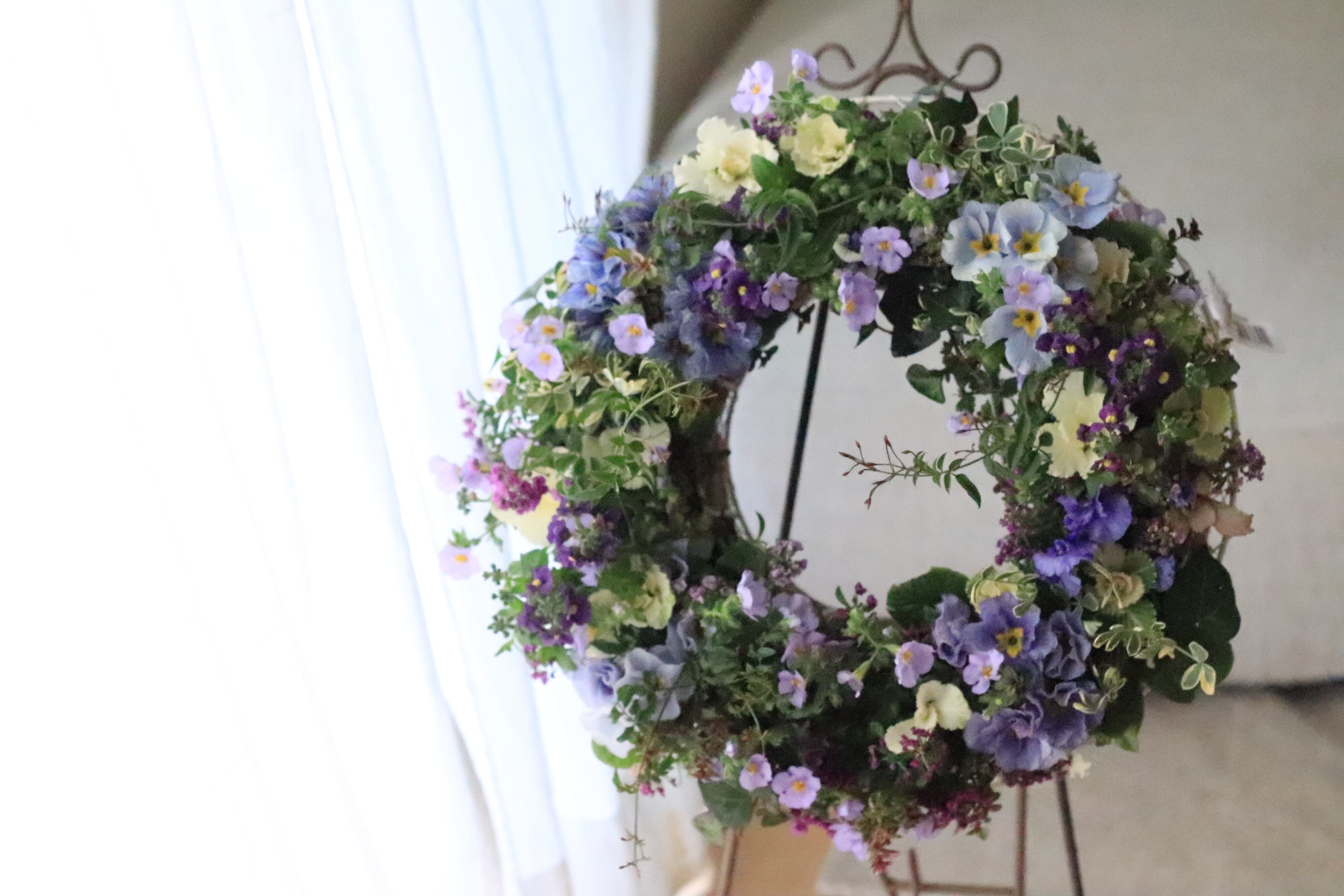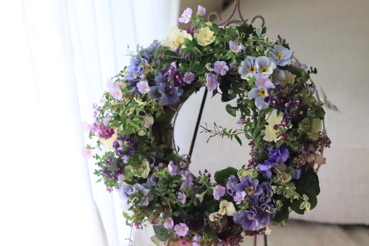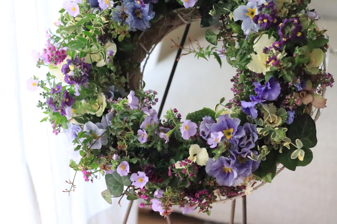 透き通るようなブルー プリムラジュリアンのリース