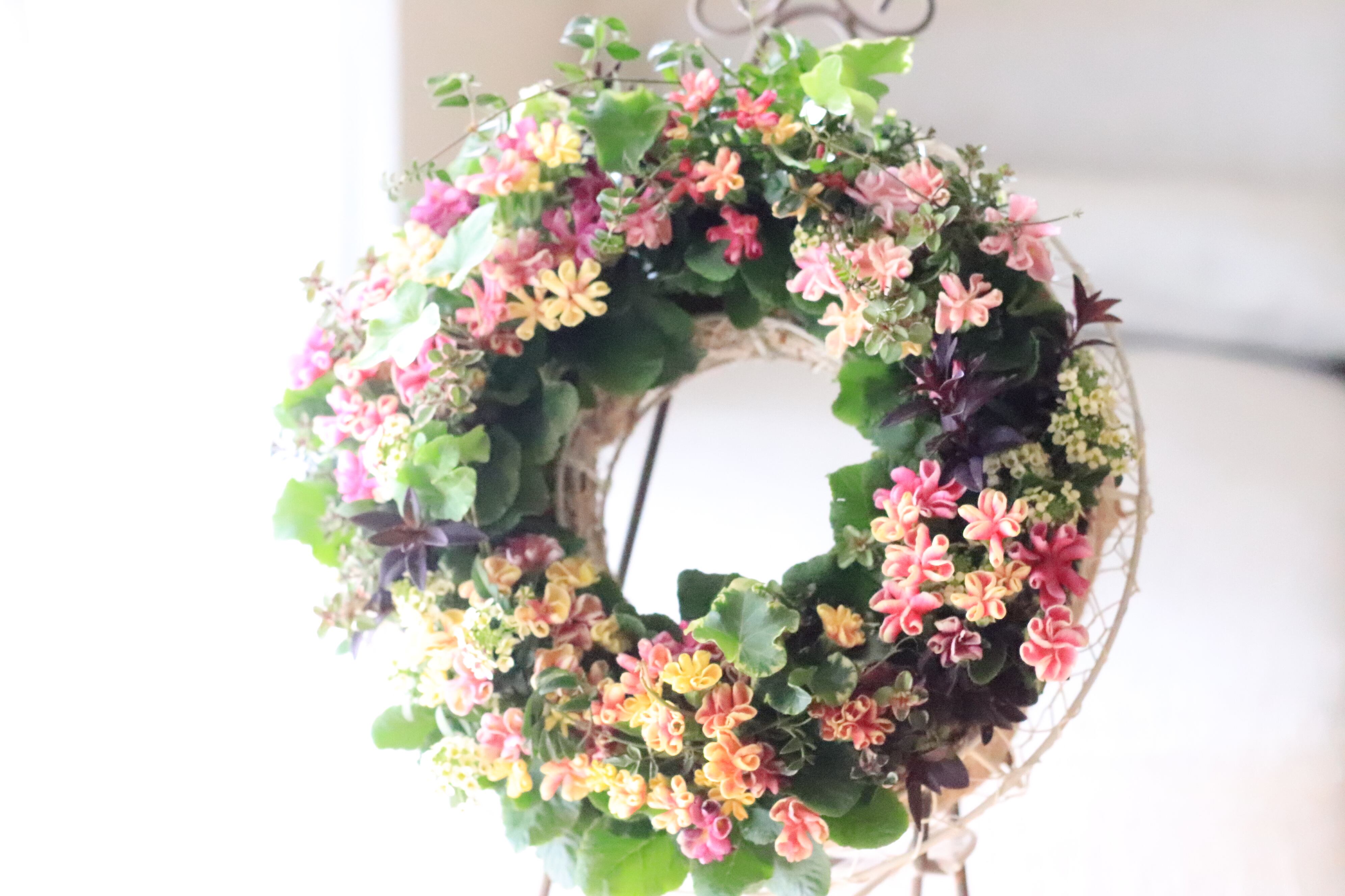 プリムラジュリアン“星咲ふくりんりん”ブリコラージュフラワーリースです