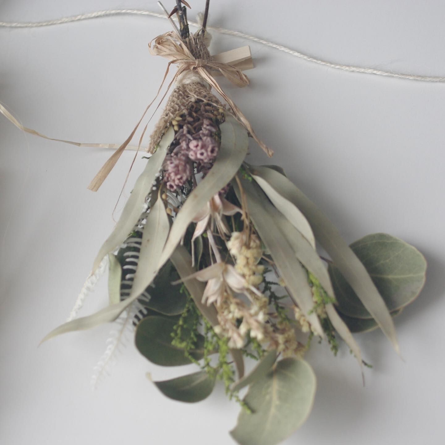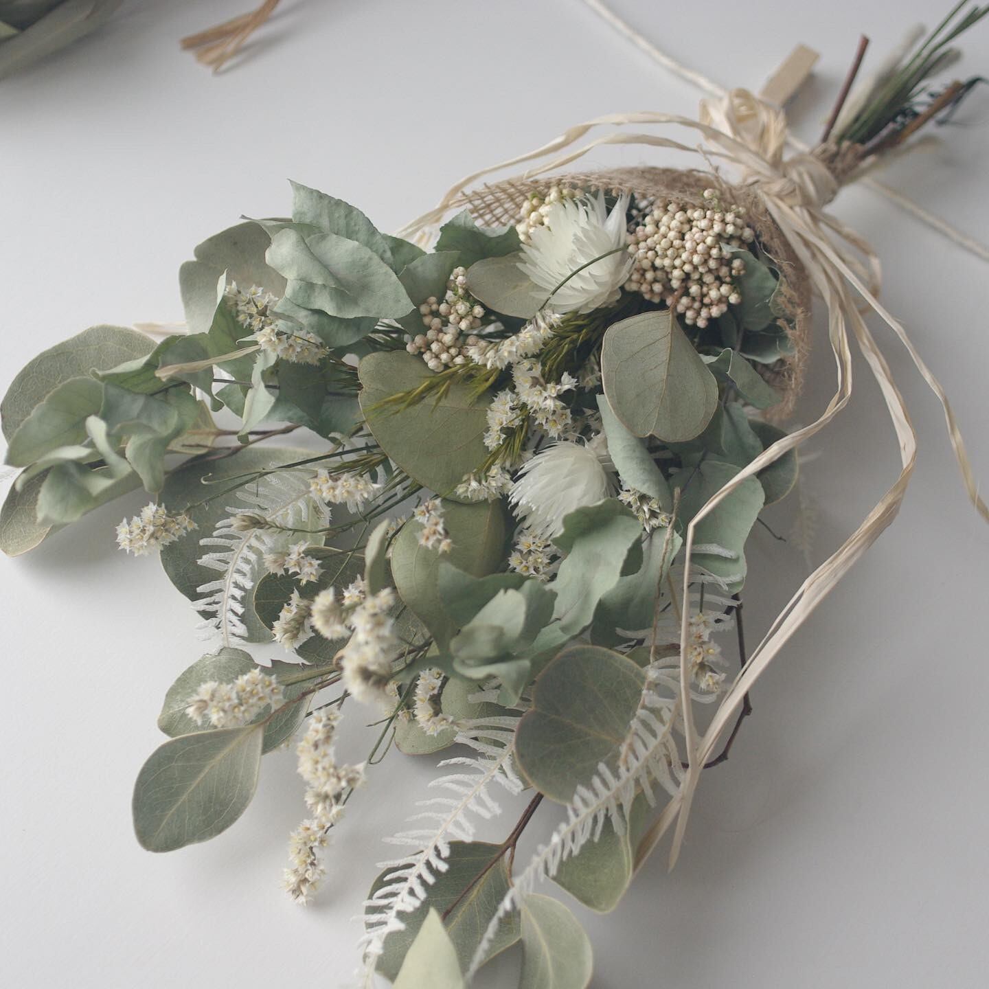 ユーカリのシルバーグリーンを合わせてアンティーク調のナチュラルな感じに仕上がりました
