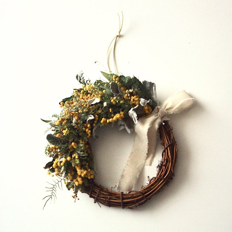 ミモザのハーフムーンリース