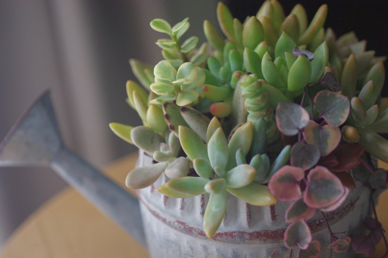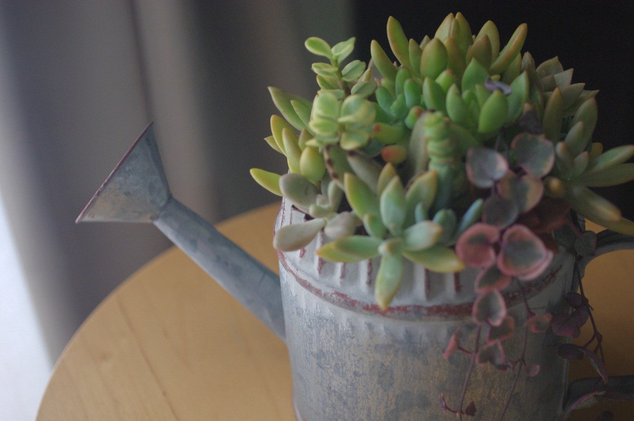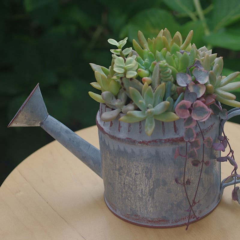 多肉植物をブリキの器にブリコラージュ
