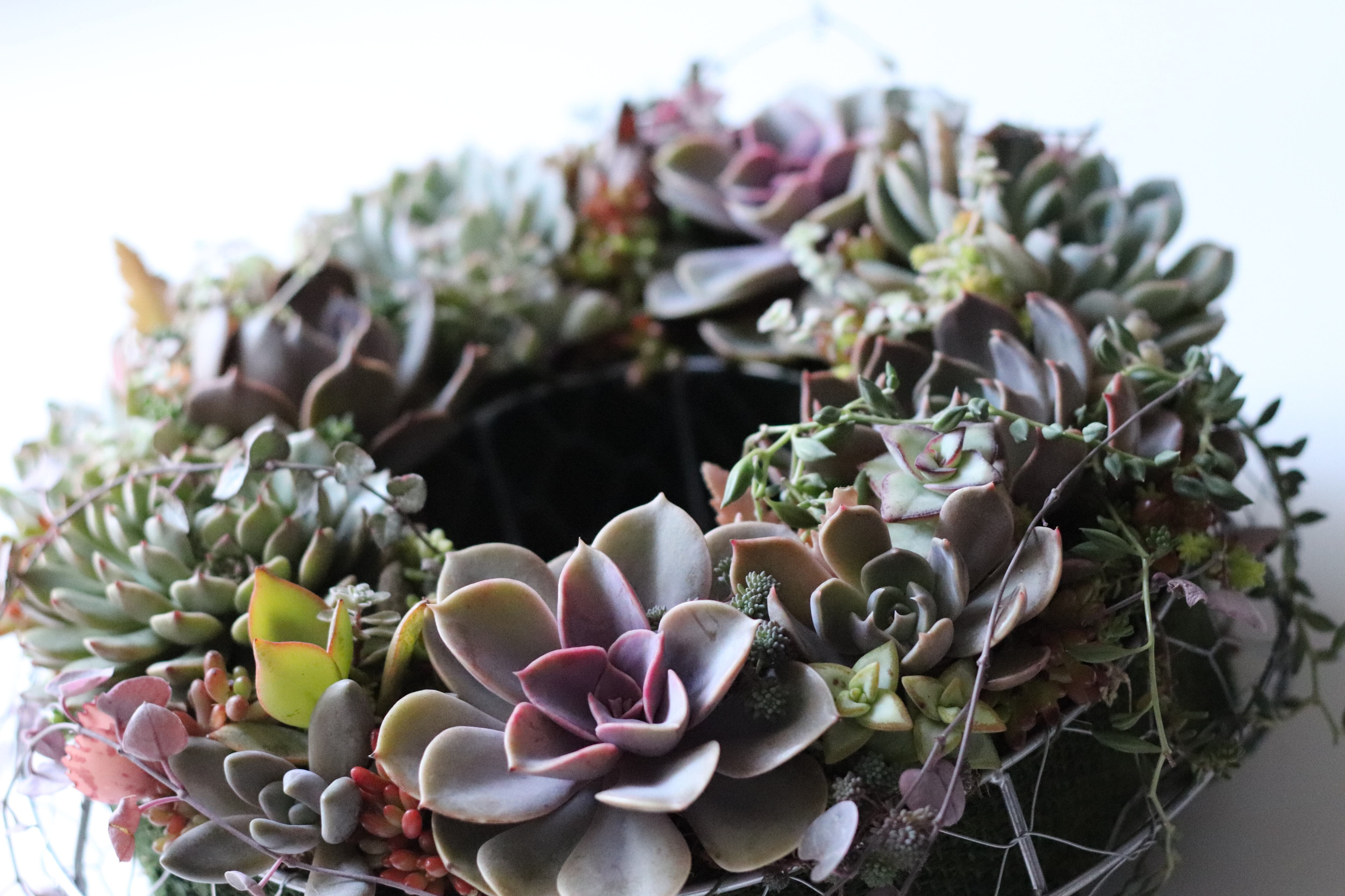 大きさの違う多肉植物を隙間なく詰め込んだ