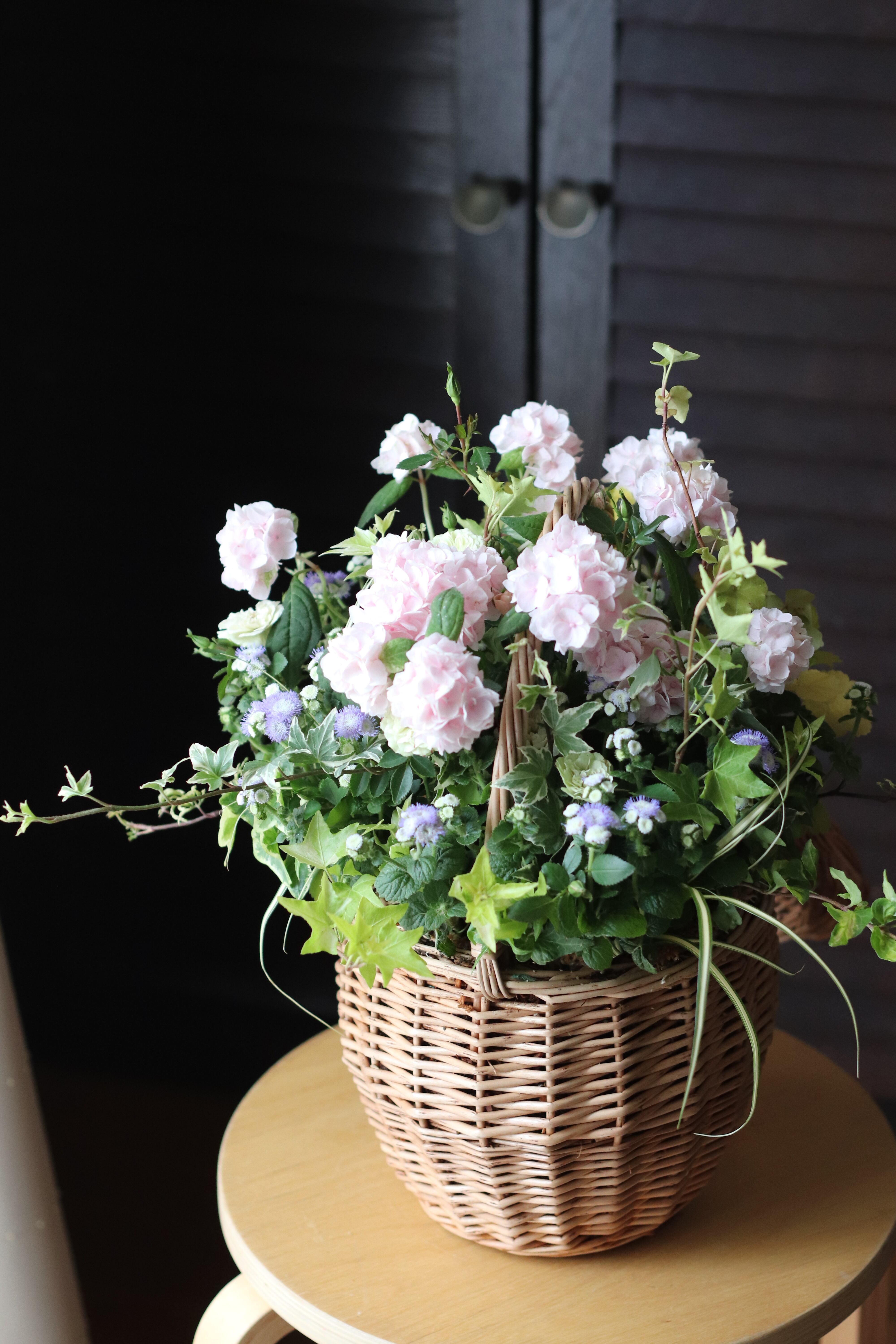 生きているブリコラージュフラワーなのでお届け時には花が咲き進んでいたり、蔓が伸びたりと写真とは少し様子が変わっている場合があります