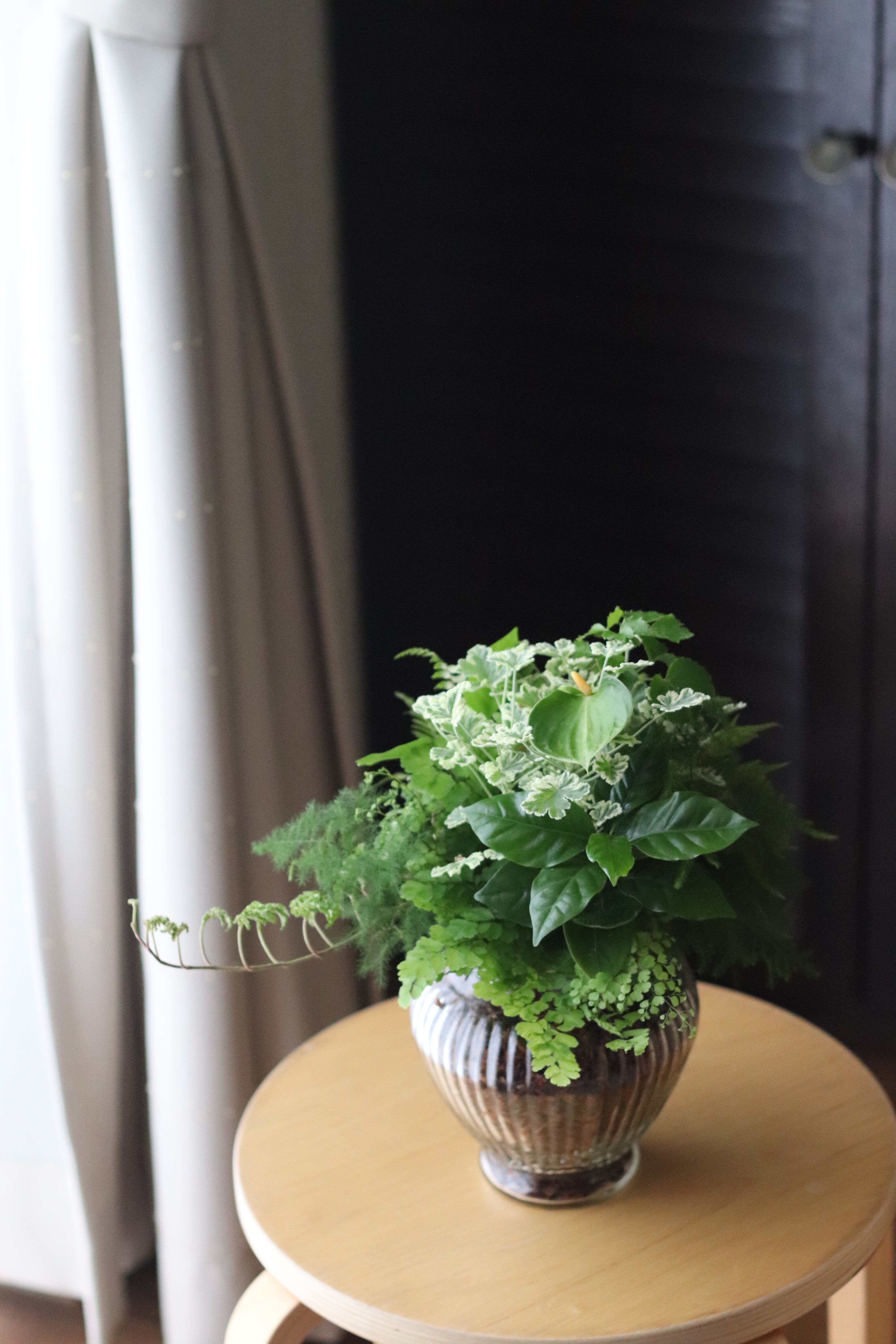 観葉植物のガラス植えブリコラージュ