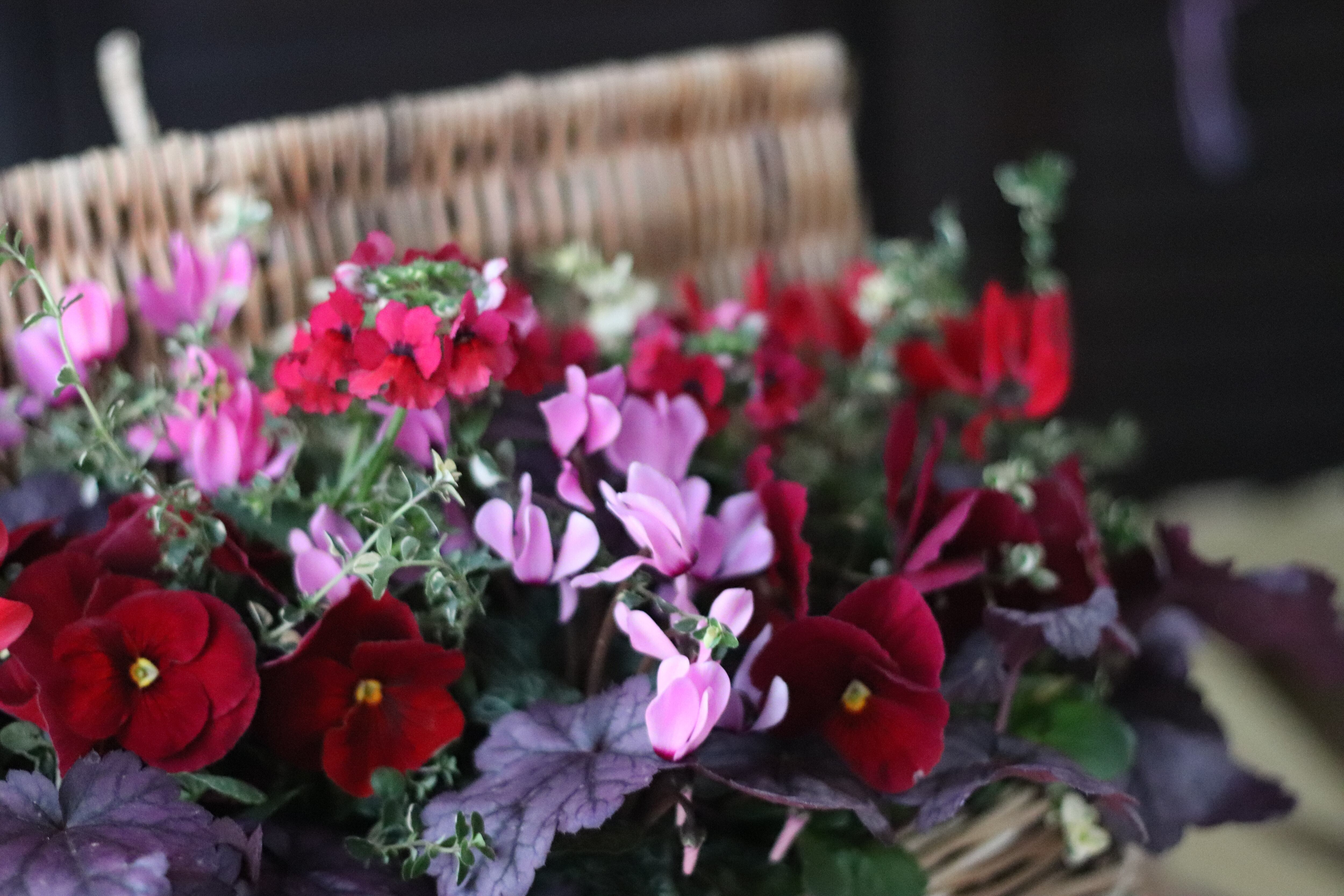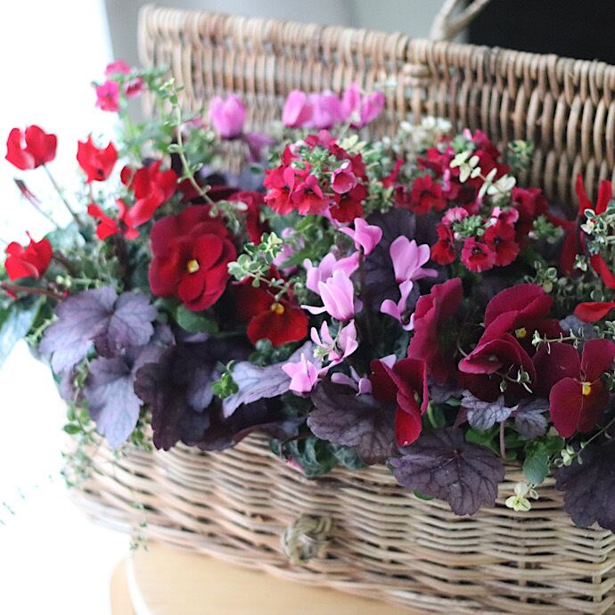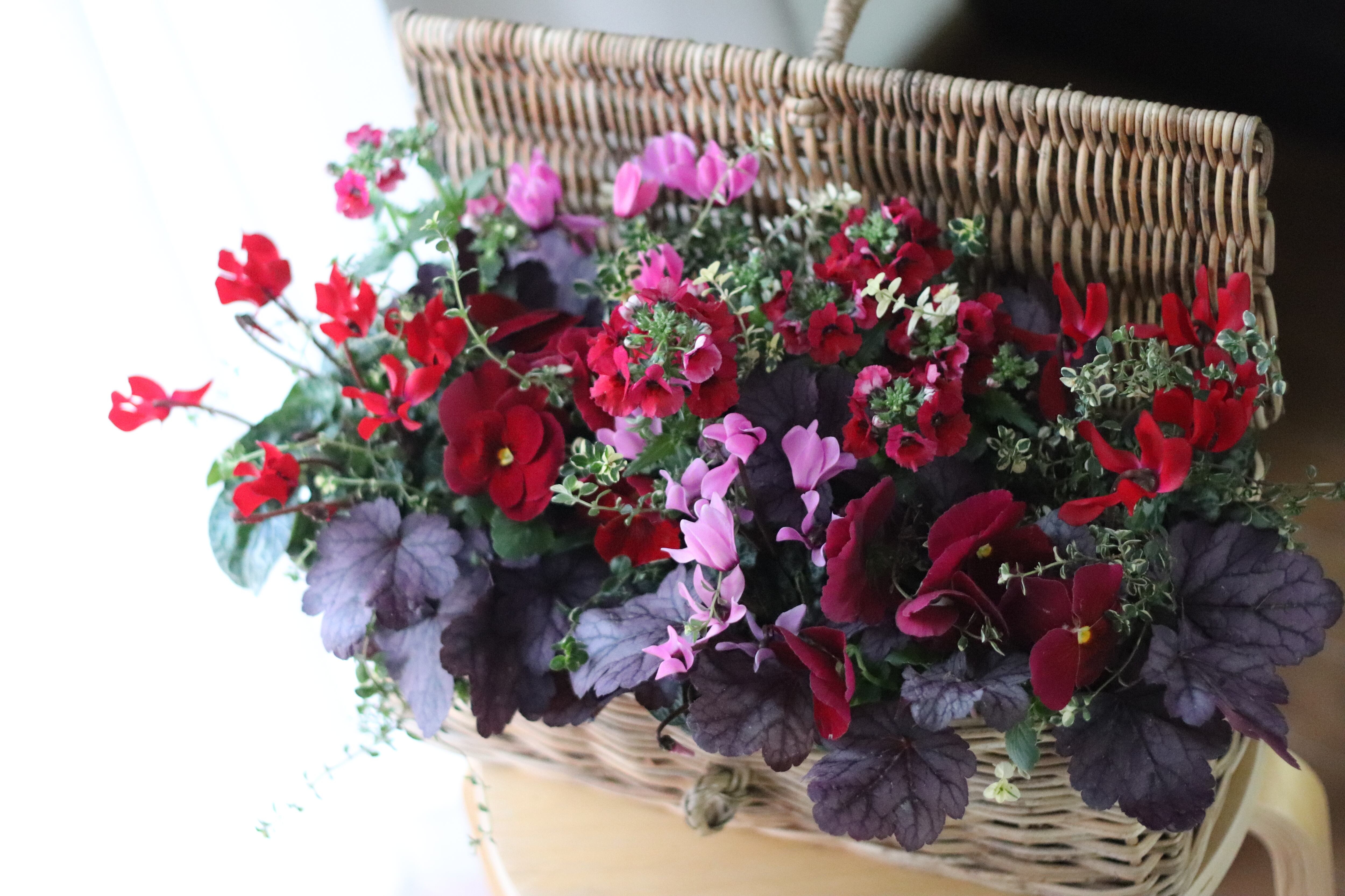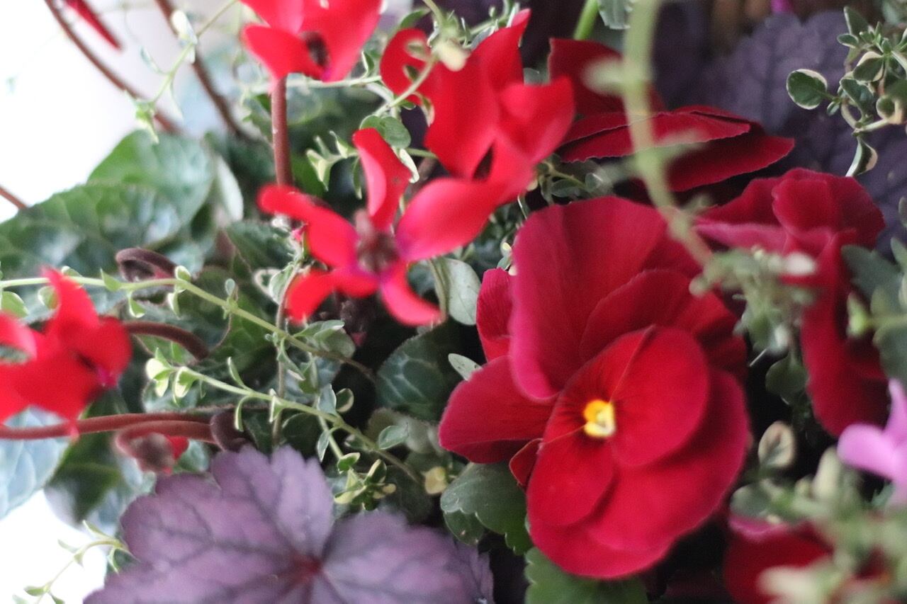大人の赤 シクラメンとパンジーのブリコラージュ