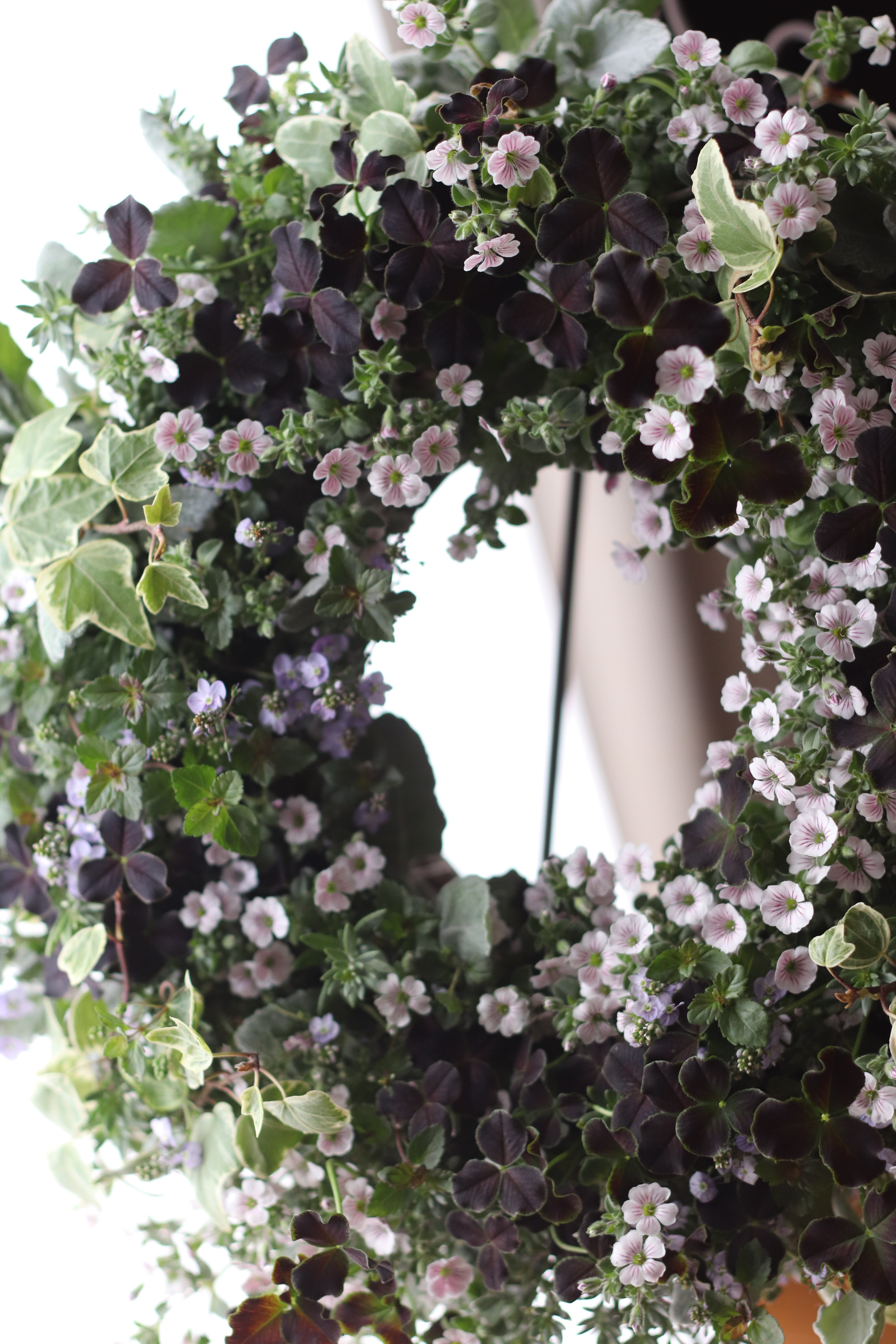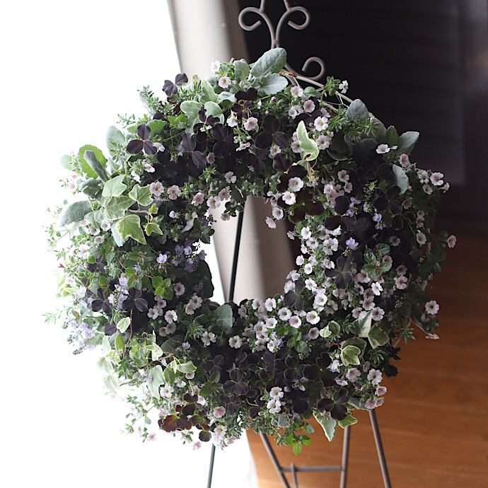 全て根っこのついた生きているブリコラージュフラワーリースです