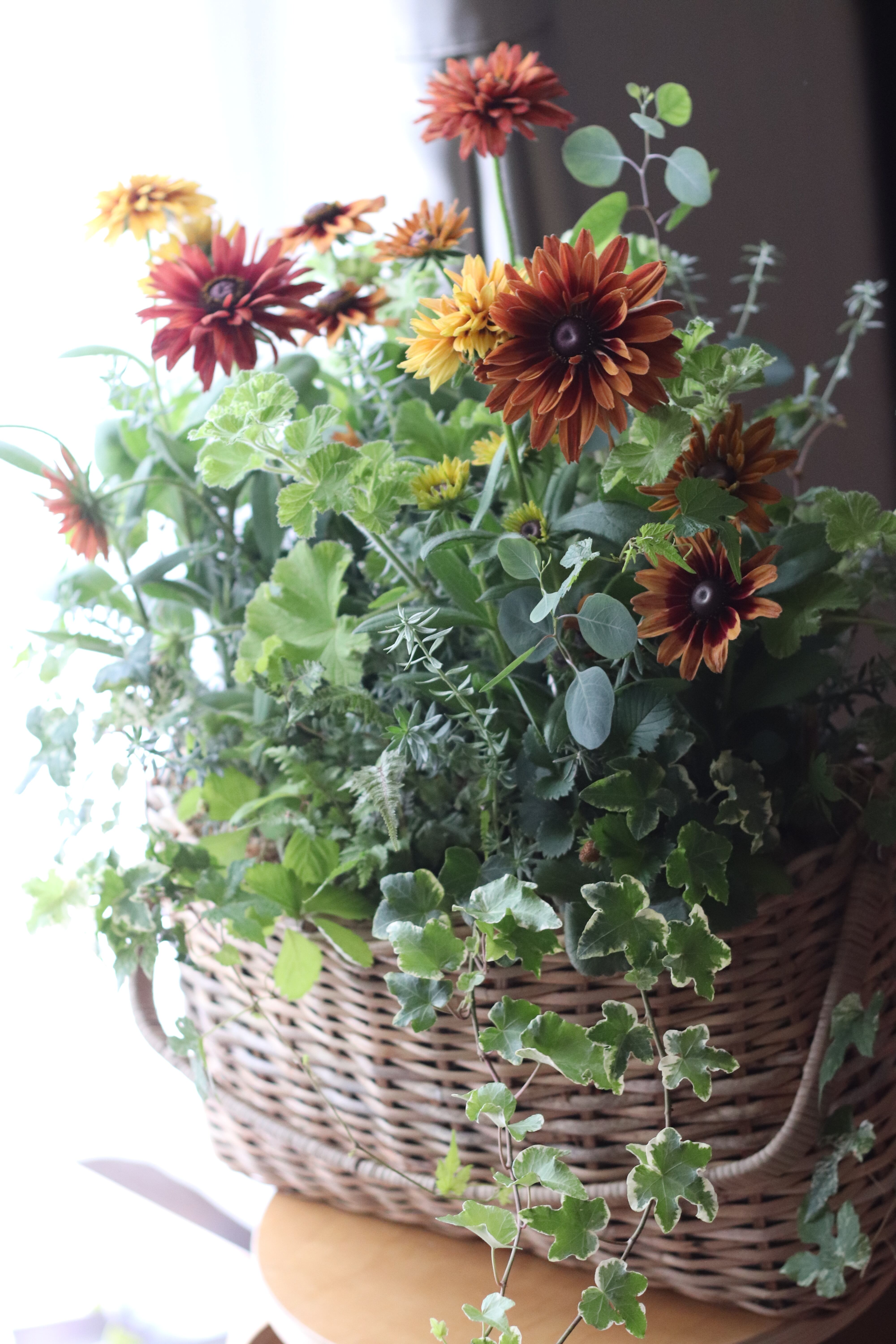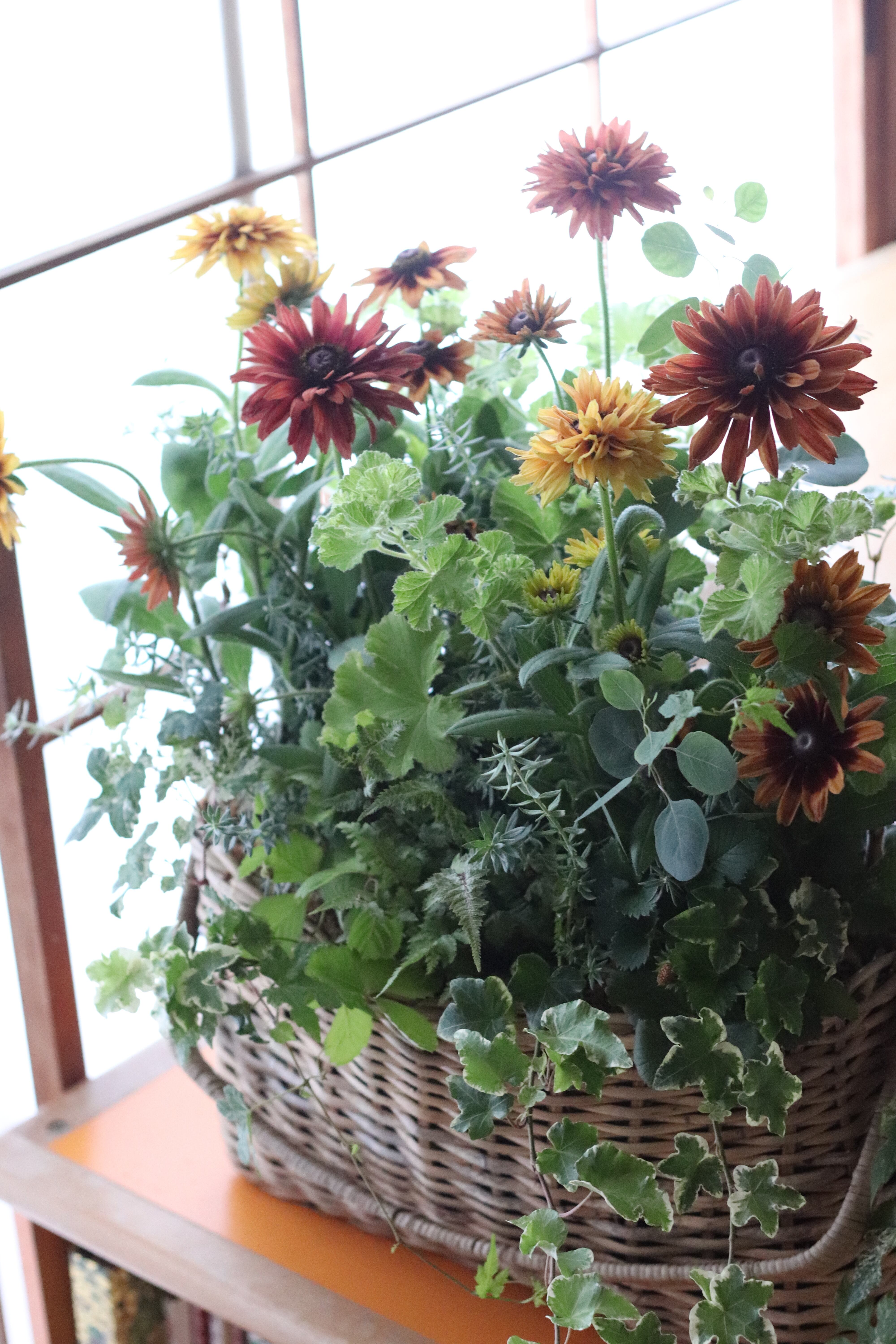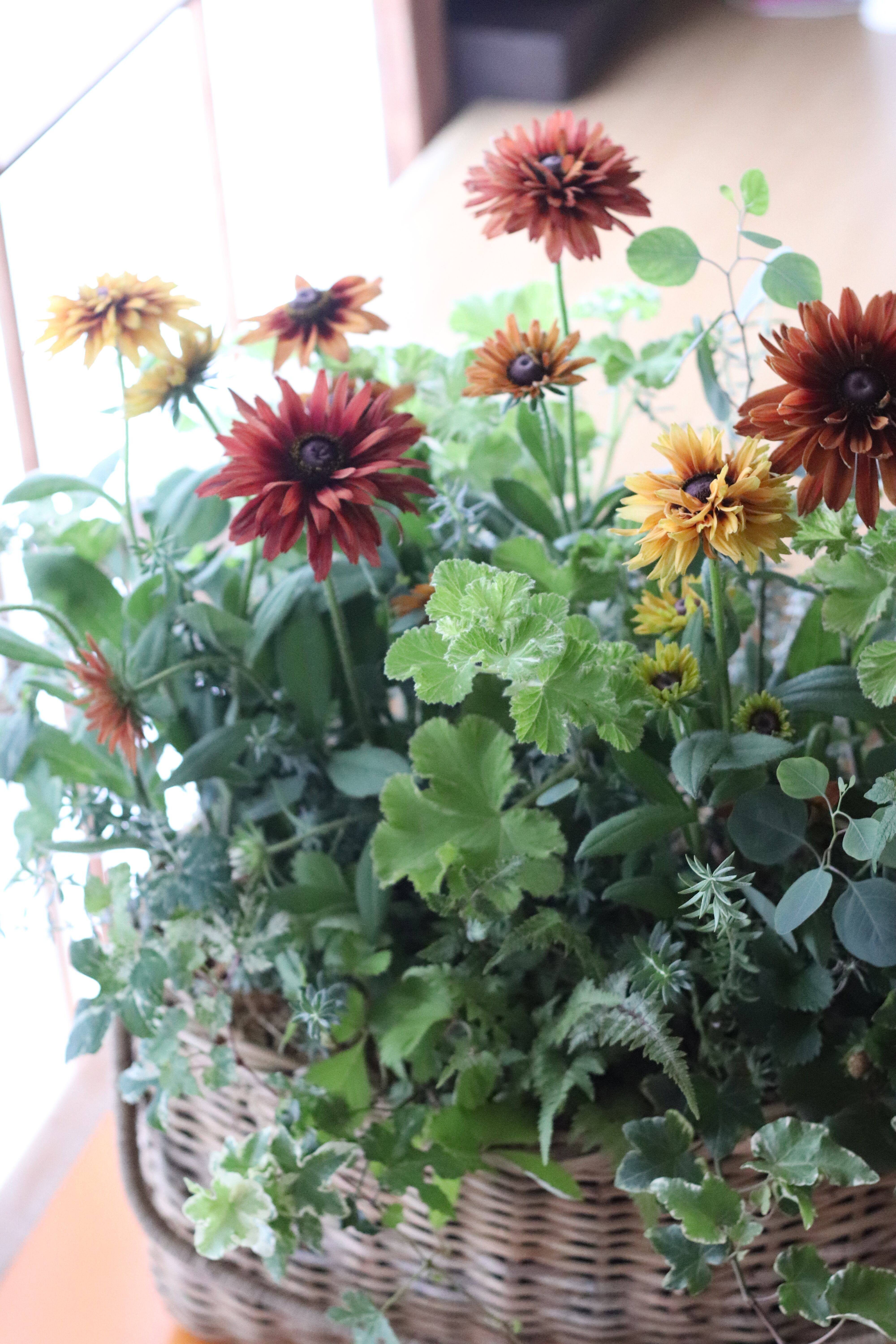 パッと目を引くルドベキアを使ったブリコラージュフラワーです