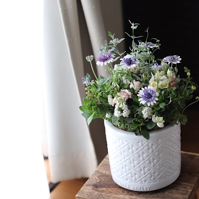 シルバーグリーンの葉を合わせて優しい雰囲気に