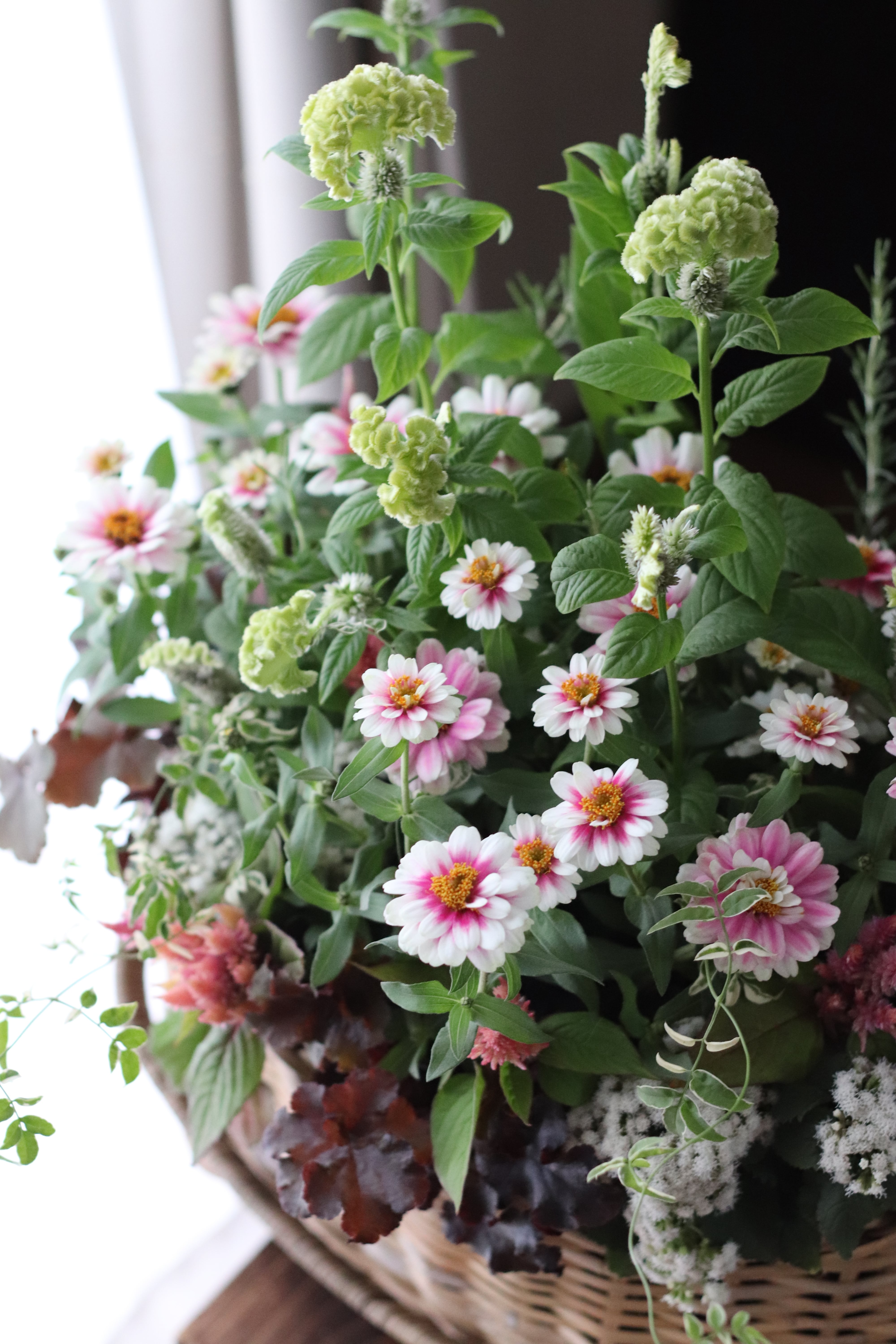 ジニアがもっこもこにたくさんのお花を咲かせています