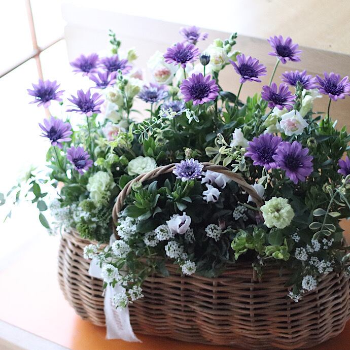 オステオスペルマムの大人色バスケットブリコラージュ