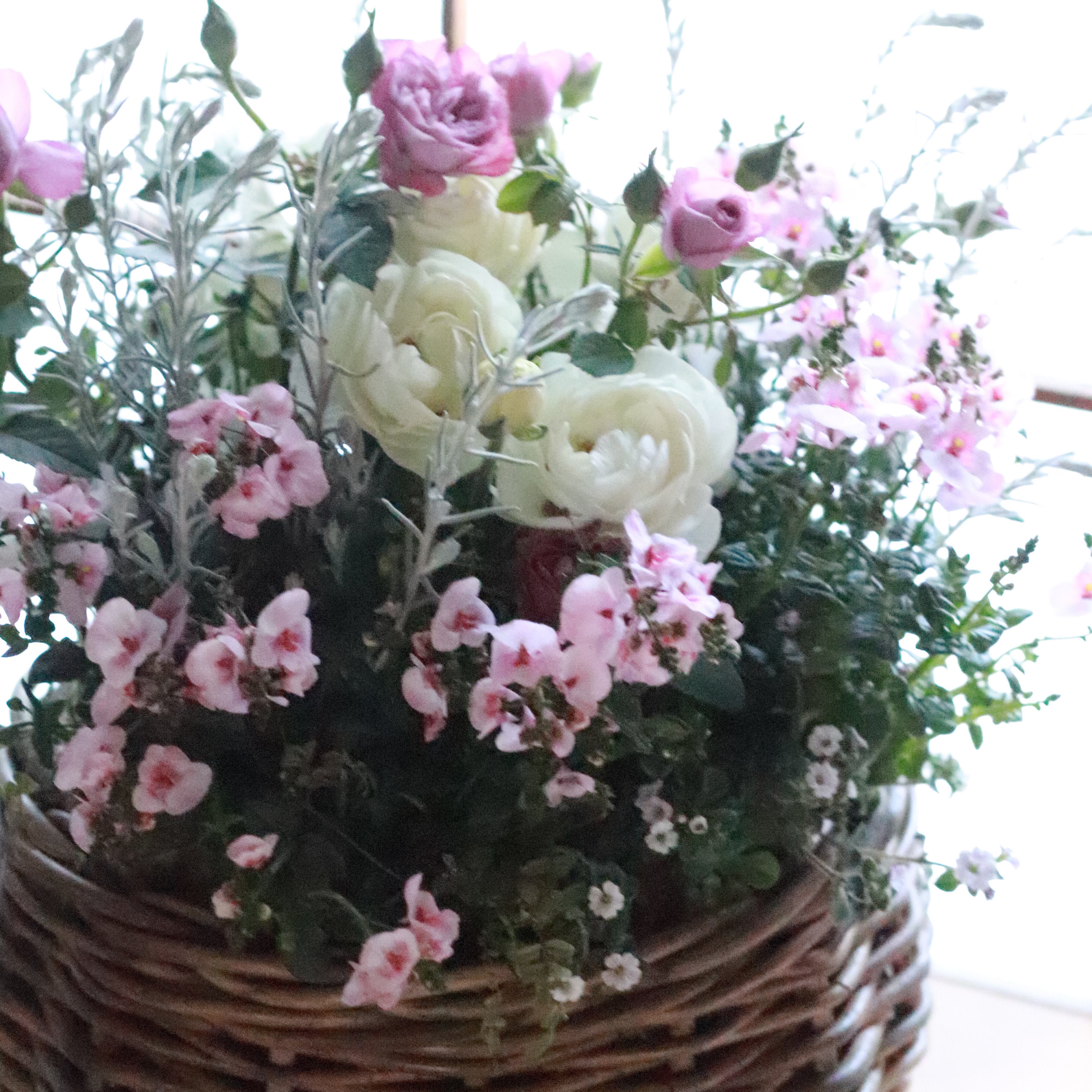 ピンクのディアスシアの花畑のようなブリコラージュフラワーです